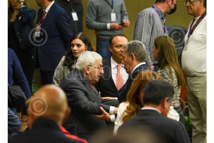 Francisco Olvera ex gobernador de Hidalgo durante la conferencia de prensa de Alejandro Moreno Cárdenas líder nacional del PRI, acompañado por priistas en donde se refrendó el apoyo a Alejandra del Moral como precandidata a la Gubernatura del Estado de México así como negar rotundamente un divisionismo.