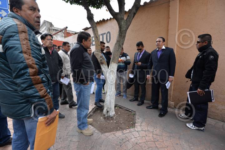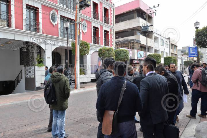 TOLUCA, ESTADO DE MÉXICO, 29ENERO2018.- Los 174 elementos que fueron despedidos la semana pasada de la Secretaria de Seguridad del Estado del México acudieron ante el Trubunal de Justicia Administrativa para exigir que sean reinstalados en sus puestos, ya que su despido no fue de forma legal. FOTO: ARTEMIO GUERRA BAZ /CUARTOSCURO.COM