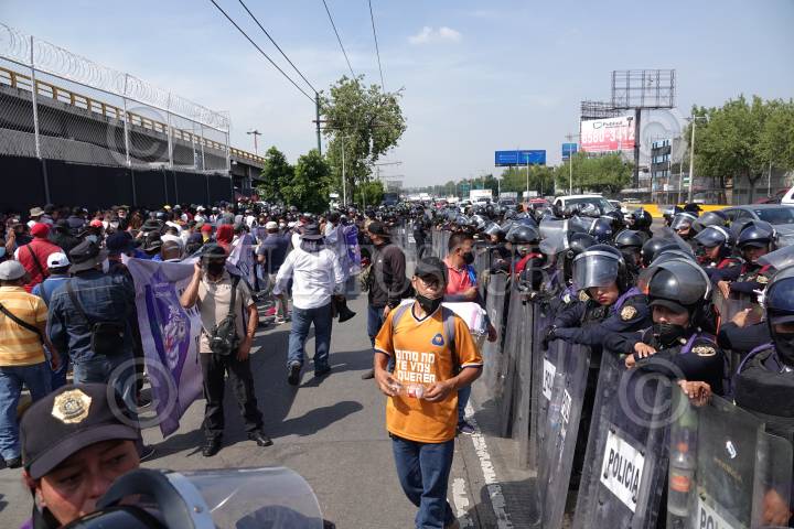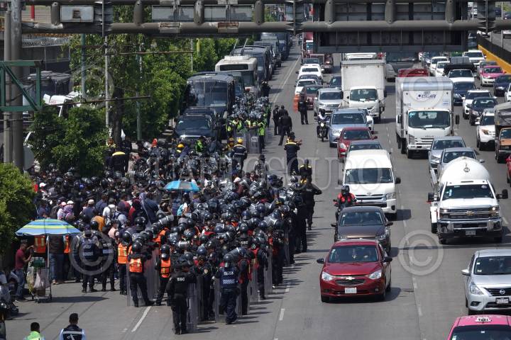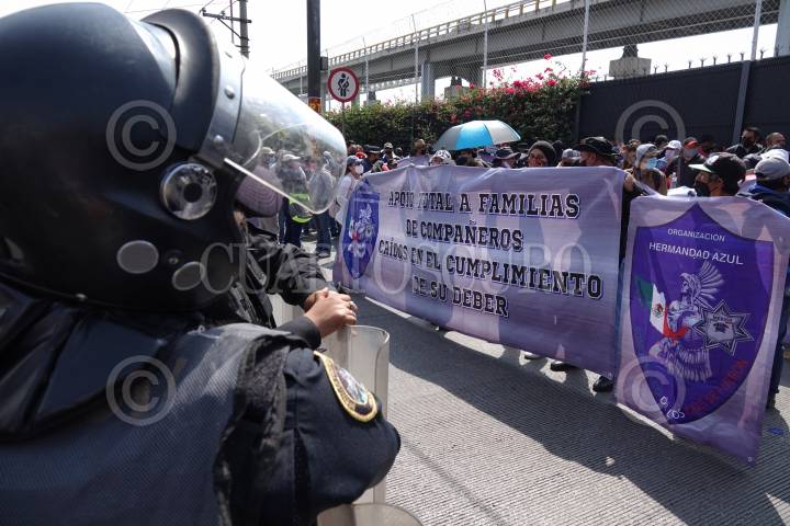 Policías capitalinos encapsularon el contingente de ex policías federal sobre Circuito Interior.