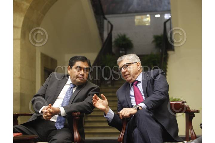 MÉXICO, D.F., 06NOVIEMBRE2015.- El senador Miguel Barbosa Huerta, coordinador del Grupo Parlamentario del PRD, y César Augusto Gaviria Trujillo, ex presidente de Colombia, participaron en el seminario Asumiendo el Control: Régimen de Drogas y Salud Pública, que se realizó en la vieja casona de Xicoténcatl. FOTO: CUARTOSCURO.COM