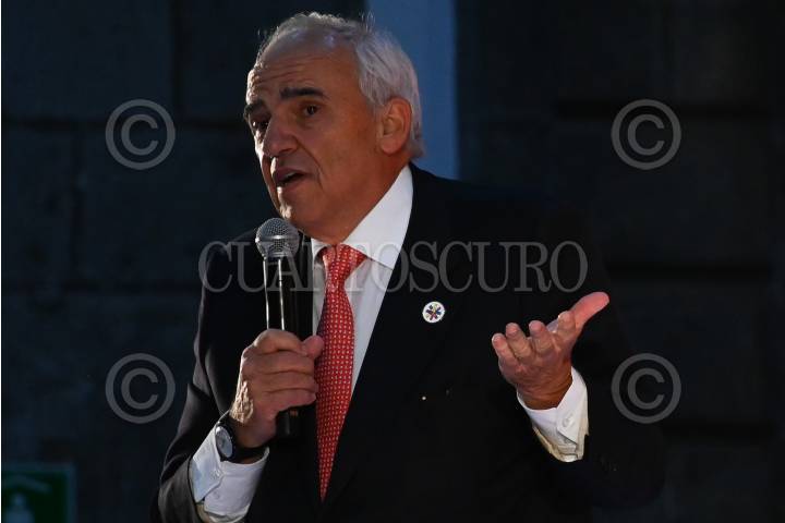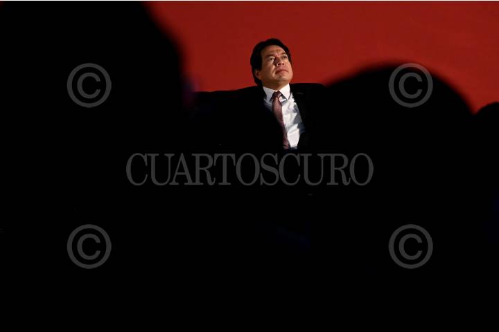 Mario Delgado, dirigente nacional de Morena, escucha el discurso de los ex presidentes.