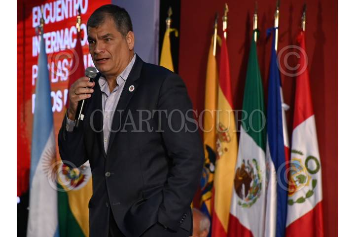 Rafael Correa, ex presidente de Ecuador, durante su participación en la reunión.