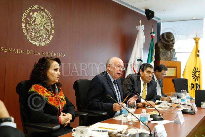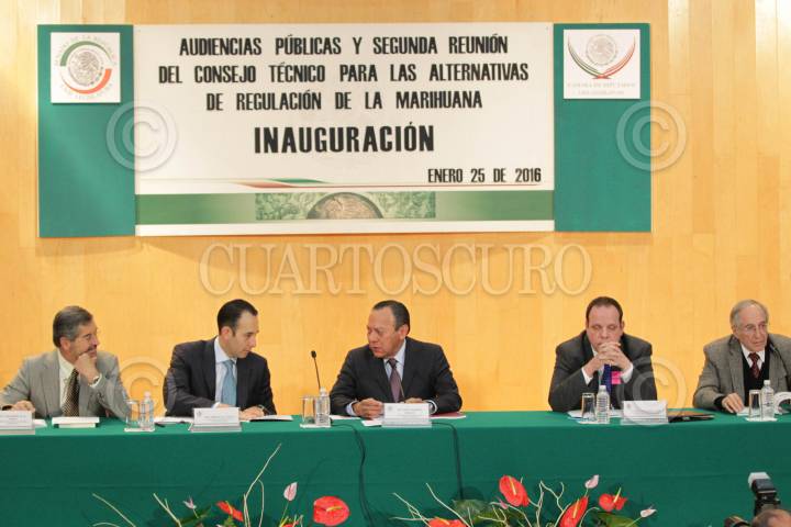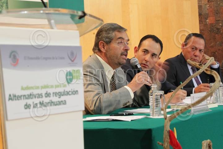 MÉXICO, D.F., 25ENERO2016.- Juan Ramón de la Fuente, ex rector de la UNAM, Roberto Gil Zuarth, presidente del Senado, Jesús Zambrano, presidente de la Cámara de Diputados, y Alejandro Hope, director del Observatorio Nacional Ciudadano, durante las audiencia públicas y segunda reunión del Consejo Técnico para las alternativas de regulación de la mariguana, que se realizaron en la Cámara de Diputados. FOTO: CUARTOSCURO.COM