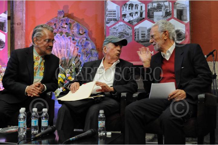 CIUDAD DE MÉXICO, 26ABRIL2016.- Hugo Aboites Aguilar, actual rector de la UACM; Pablo González Casanova, ex rector de la UNAM, y Enrique Dussel, ex rector de la UACM, participaron en el acto conmemorativo por el Décimo Quinto Aniversario de la fundación de la Universidad Autónoma de la Ciudad de México organizado en el Museo de la Ciudad de México. FOTO: DIEGO SIMÓN SÁNCHEZ /CUARTOSCURO.COM