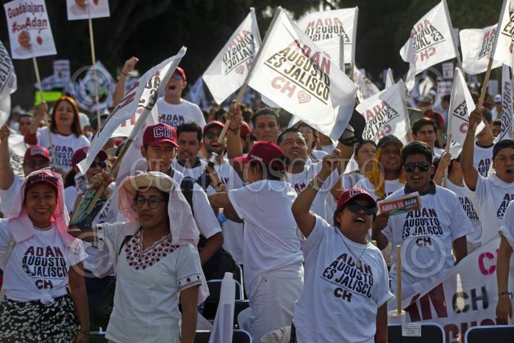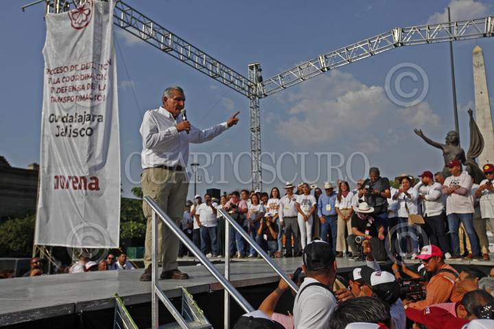 Adán Augusto López Hernández, al arribar a la Plaza de la Republica para encabezar una Asamblea Informativa en Guadalajara.