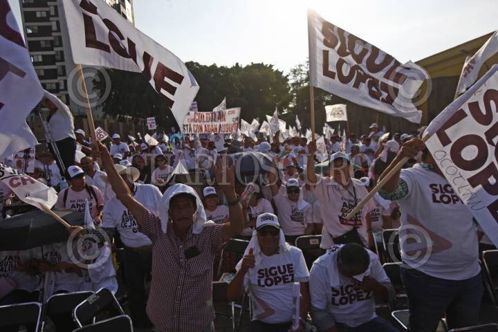 Asistentes a la Asamblea Informativa, encabezada por Adán Augusto López Hernández, aplauden la intervención del ex secretario de gobernación.