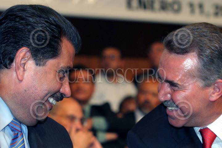 Mèxico, D.F., 11ENERO2005.- Roberto Madrazo, lìder nacional del PRI y Florentino Castro López, ex-dirigente del PRIDF, durante la toma de protesta de la dirigencia del PRI DF, en la sede nacional del revolucionario institucional. FOTO: Moisés Pablo/CUARTOSCURO.COM