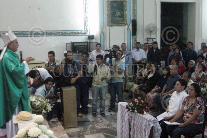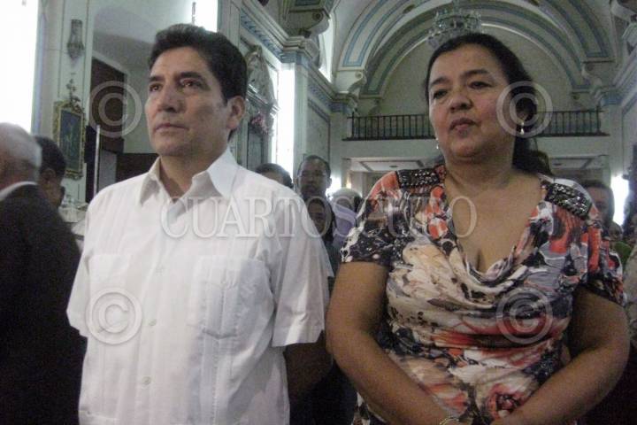 CHILPANCINGO, GUERRERO, 01MARZO2011.- Arturo Contreras Gómez, ex-rector de la Universidad Autónoma de Guerrero (UAG), asistió a una misa en la catedral de Santa Maria de la Asunción la cual fue oficiada por el obispo Alejo Zavala Castro, esto para dar gracias por la vida esto luego de que fuera liberado tras permanecer secuestrado por dos meses. En la misa estuvo acompañado por su esposa Praxedis de Contreras, del alcalde de Chilpancingo Hector Astudillo Flores y su esposa Mercedes Calvo de Astudillo, del rector de la Universidad Autonoma de Guerrero (UAG) Ascencio Villegas Arrizon, del diputado local del PRD Carlos Alvarez Reyes, así como de familiares, amigos y trabajadores de la esta casa de estudios. FOTO: OSCAR ALVARADO/CUARTOSCURO.COM