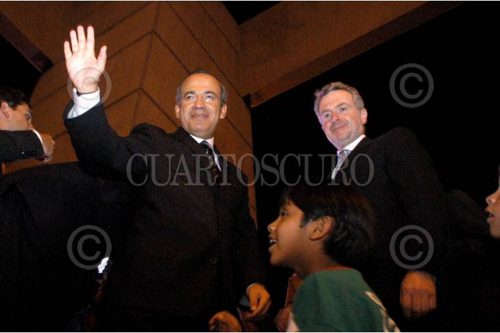 MÉXICO D.F. 06JUNIO2006.- Felipe Calderon, candidato a la presidencia por el PAN, acompañado de Santiago Creel, ex-secretario de gobiernación a su llegada al CEN del PAN después del debate de los presidenciables en WTC. FOTO. Guillermo Perea/CUARTOSCURO.COM