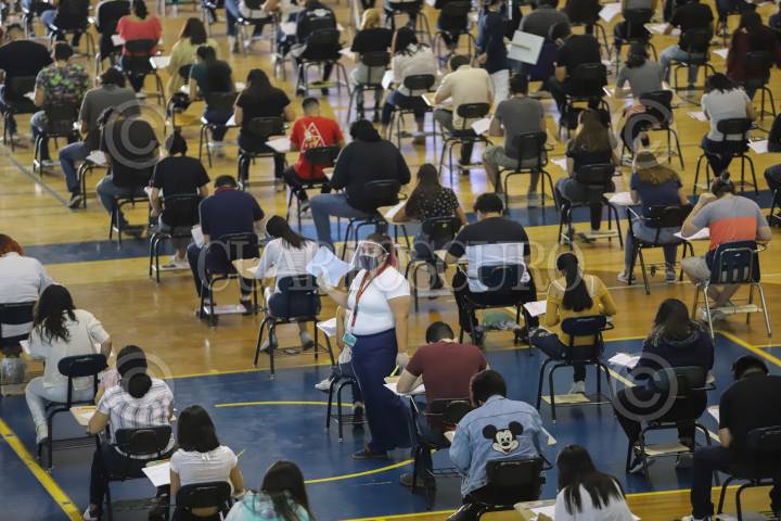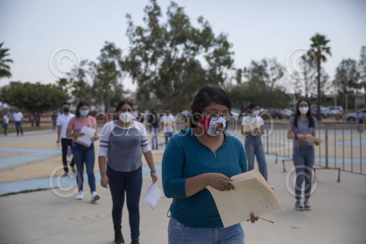Decenas de estudiantes acudieron desde temprana hora al Colegio Amado Nervo ubicado en Roma Sur para realizar su examen de admisión a Licenciatura 2021
