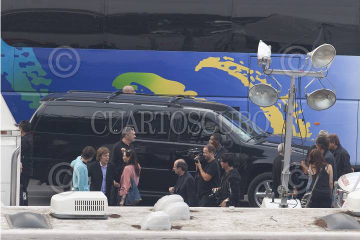 MÉXICO, D.F.10MAYO2012.- Paul Mac Cartney, exintegrante de los Beatles, llega con su esposa a la plancha del Zócalo, donde ofreció hoy un concierto gratuito. Al iniciar felicitó a las madres mexicanas en su día. FOTO: JUAN PABLO ZAMORA /CUARTOSCURO.COM