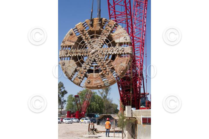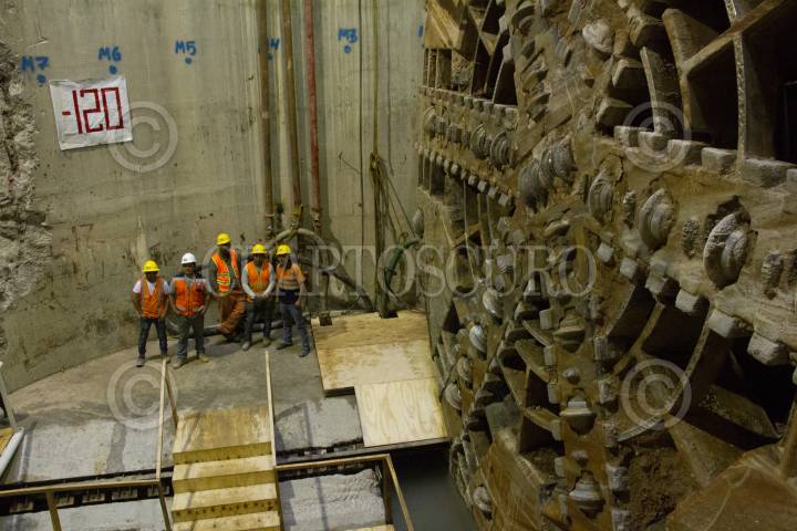 MÉXICO D.F., 07ENERO2010.- El escudo, una gigantesca excavadora encargada de hacer el túnel para el tramo subterráneo de la Línea 12 del Metro fue puesto en operación por el jefe de gobierno del Distrito Federal, Marcelo Ebrard Casaubon, esto en donde estará la estación Mexicaltzingo en la calle Centeno y avenida Ermita Iztapalapa. Este perforador subterráneo de 105 metros de largo, conocido como “Escudo de Presión Balanceada” perforará 8 kilómetros desde la calle Centeno a Mixcoac a una velocidad promedio de 12 metros al día a partir de hoy y hasta septiembre de 2011. FOTO: RODOLFO ANGULO/CUARTOSCURO.COM