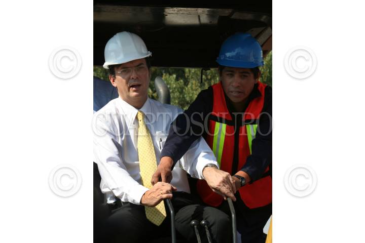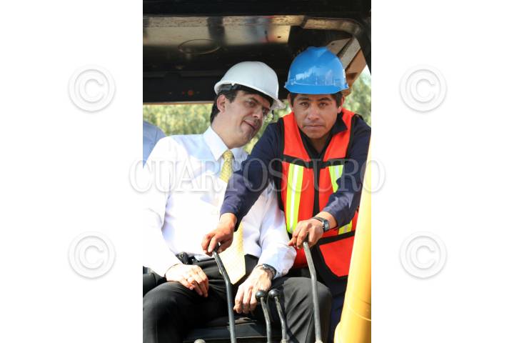 MÉXICO, D.F. 06DICIEMBRE2006. El jefe de gobierno capitalino, Marcelo Ebrard Casaubón visitó la delegación Iztapalapa, donde presentó el plan para mejoras de la distribucuón del agua potable en la zona. En la imagen, el funcionario hecha a andar una máquina excavadora para comenzar con las obras. FOTO: PAOLA HIDALGO/CUARTOSCURO.COM