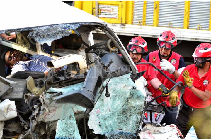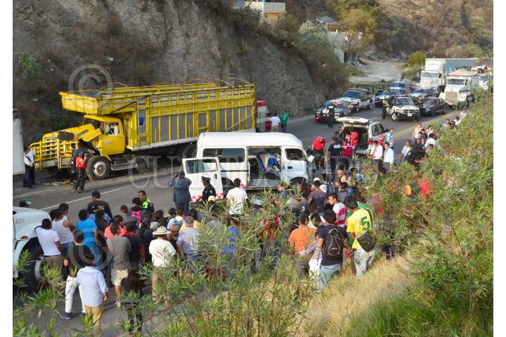 NAUCALPAN, EDOMEX, 05MARZO2015.- Una persona perdió la vida y 7 personas resultaron lesionadas, entre ellos dos menores, tras un choque entre un camión de carga y una combi de trasporte público, sobre la carretera Naucalpan Toluca en el Kilometro 11. FOTO: ARMANDO MONROY /CUARTOSCURO.COM