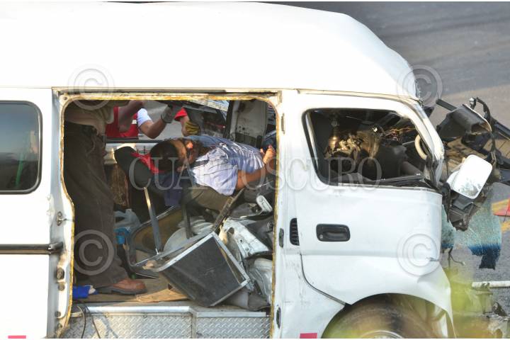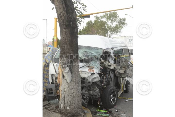 ECATEPEC, ESTADO DE MÉXICO, 27JUNIO2016.- Una combi choco contra un árbol provocando la muerte del chófer, la unidad previamente había colisionado con un tráiler, lo que provocó su fuga, pasajeros de la unidad señalaron que el conductor iba alcoholizado. Los hechos ocurrieron sobre la Vía Morelos frente a Plaza Ecatepec, en la colonia Los Laureles. FOTO: ARMANDO MONROY /CUARTOSCURO.COM