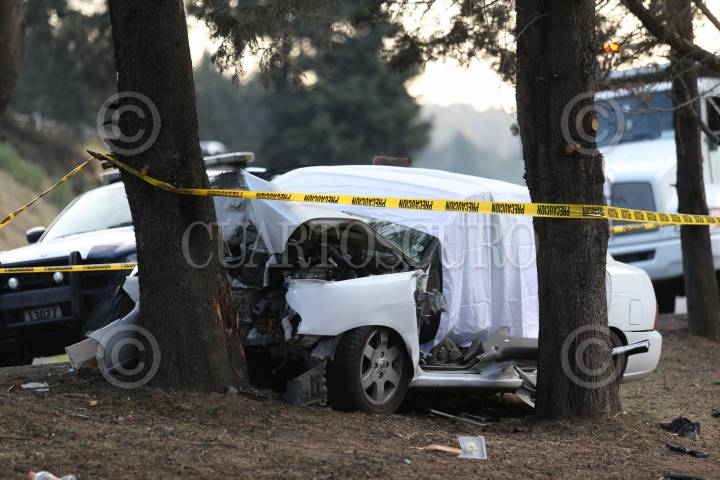 CIUDAD DE MÉXICO, 16ABRIL2016.- Un hombre murió cuando su automóvil que conducía a toda velocidad se estrelló con un árbol en la autopista México-Toluca, kilómetro 26. FOTO: ARMANDO MONROY /CUARTOSCURO.COM