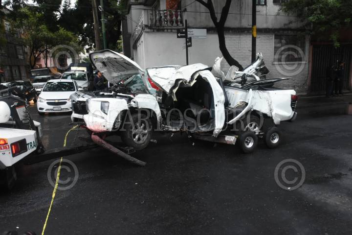Tres presuntos elementos de la FGR murieron al impactar la camioneta en la que viajaban con un árbol, en los carriles centrales del Viaducto, a la altura de la colonia Atenor Salas.
