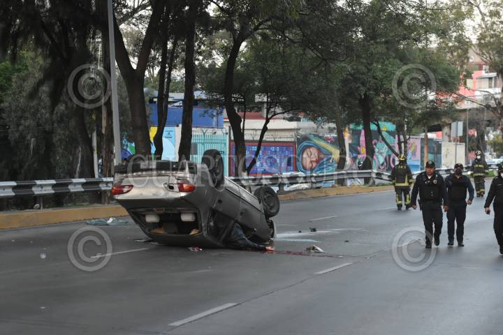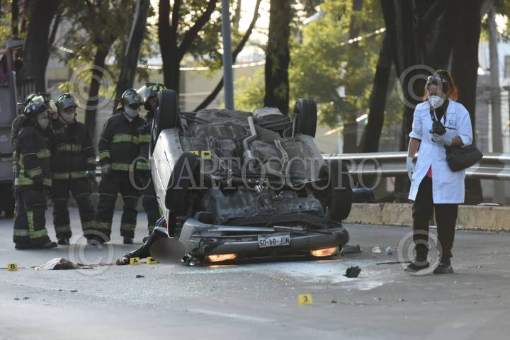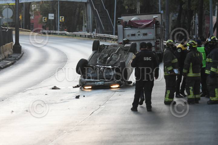 Un joven murió al volcar el automóvil en el que viajaba, en una curva del Circuito Interior Río Churubusco, en la alcaldía Coyoacán.