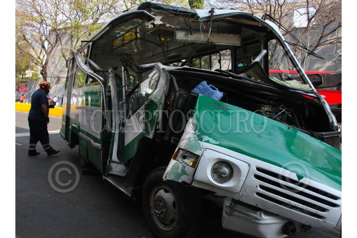 Saldo de 9 lesionados deja choque de microbús en Calzada de los Misterios.