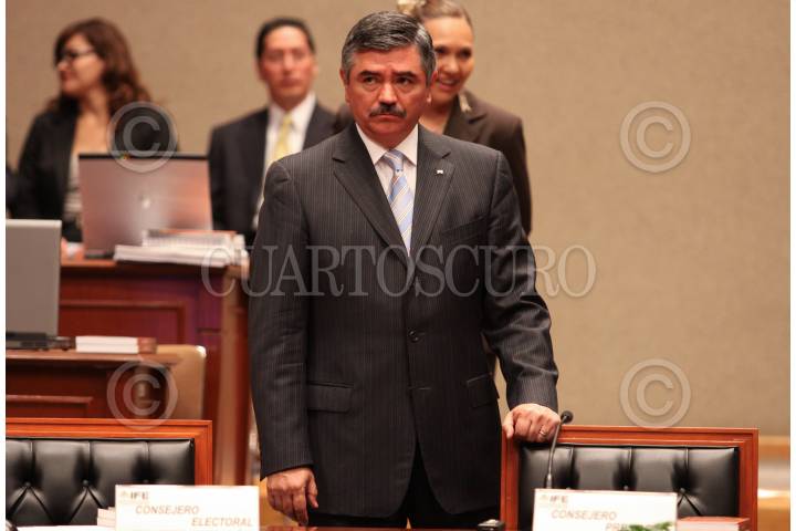 MÉXICO D.F., 24MARZO2009.- Leonardo Valdésd Zurita, Consejero Presidente del IFE, encabezó la sesión extraordinaria del instituto en la cual se discutió el dictamen modificado que reduce casi a la mitad la multa originalmente aplicada a Televisión Azteca y TV Azteca –dos razones sociales de la televisora del Ajusco– con 4 millones de pesos. En este nuevo dictamen se eliminó, entre otros aspectos, el carácter de reincidente en la comisión de irregularidades relacionadas con la transmisión de espots electorales. FOTO: MOISÉS PABLO/CUARTOSCURO.COM