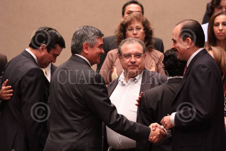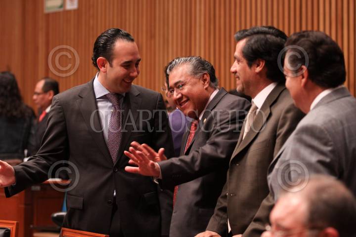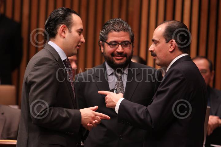 MÉXICO D.F., 24MARZO2009.- Roberto Gil Zuarth, representante panista, Javier Hernández Manzanares, consejero del poder legislativo del PRD y Rafael Hernández Estrada, representante perredista, durante la sesión extraordinaria en la cual se discutió el dictamen modificado que reduce casi a la mitad la multa originalmente aplicada a Televisión Azteca y TV Azteca –dos razones sociales de la televisora del Ajusco– con 4 millones de pesos. En este nuevo dictamen se eliminó, entre otros aspectos, el carácter de reincidente en la comisión de irregularidades relacionadas con la transmisión de espots electorales. FOTO: MOISÉS PABLO/CUARTOSCURO.COM