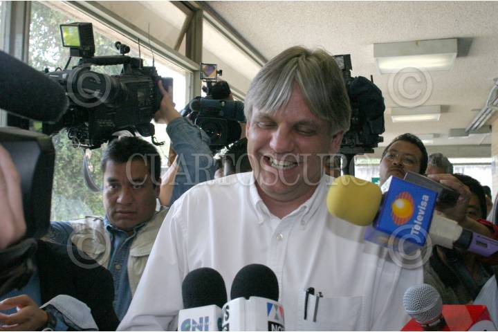 México, D.F., 11MAYO2004.- Carlos Imáz, exdelegado en Tlalpan, pagó una fianza de 121 mil pesos y así podrá seguir su juicio de uso de dinero ilicíto para fines electorales en libertad. FOTO: Moisés Pablo/CUARTOSCURO.COM