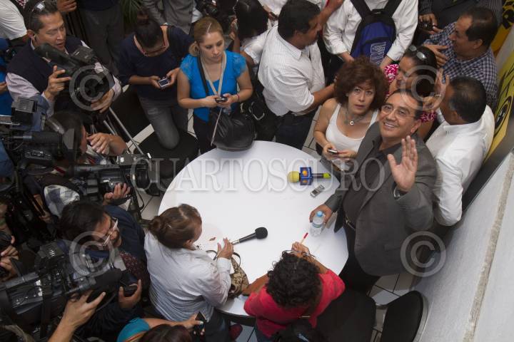CUERNAVACA, MORELOS, 16MAYO2024.- El ex asesor en materia anticorrupción del gobierno de Cuauhtémoc Blanco Bravo, hizo pública una denuncia por los delitos de ejercicio abusivo de funciones, ejercicio ilícito del servicio público, incumplimiento de funciones, peculado, coalición y lo que resulte en contra del ex gobernador Graco Ramirez Abreu, y Lucia Meza Guzmán, actualmente candidata a la gubernatura de la coalición de los partidos PRI, PAN, PRD y el partido estatal Redes Sociales Progresistas. Gerardo Becerra puso la denuncia ante la Fiscalía Anticorrupción del Estado y en ella acusa a los citados en un desfalco al erario estatal de más 1800 millones de pesos. Lucia Meza Guzmán en ese periodo de gobierno era diputada por el Partido de la Revolución Democrática y presidenta del Congreso del Estado. FOTO: MARGARITO PÉREZ RETANA/CUARTOSCURO.COM