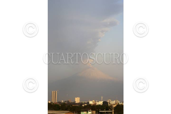 PUEBLA, PUEBLA, 18ABRIL2012.- El volcán Popocatépetl, que desde hace dos días da muestras de estar muy activo, amaneció hoy con una gran fumarola de cenizas que llega hasta esta ciudad cubriendo una gran parte de la ciudad y otras comunidades de la región. Estas fumarolas han creado, en varios lugares, una situación de emergencia y ya se planean evacuaciones, por supuesto sin llegar al pánico. FOTO: HILDA RÍOS /CUARTOSCURO.COM