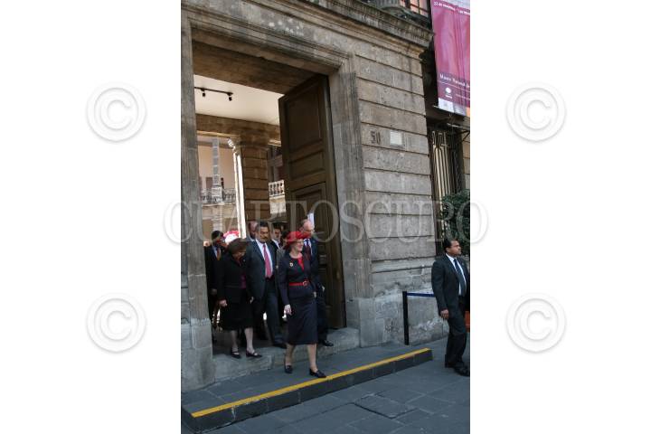 MÉXICO D.F. 20FEBRERO2008.-Sergio Vela Martinez titular de CONACULTA, Cristini Magnania junto con su esposo Miguel Aleman, Manuel Marron y María Teresa Franco Directora del Instituto Nacional de Bellas Artes al termino de la visita de a reina de Dinamarca Margarita II, al Museo de San Carlos, donde se exibe la muestra de Arte Contemporáneo de Dinamarca. FOTO: GUILLERMO PEREA /CUARTOSCURO.COM