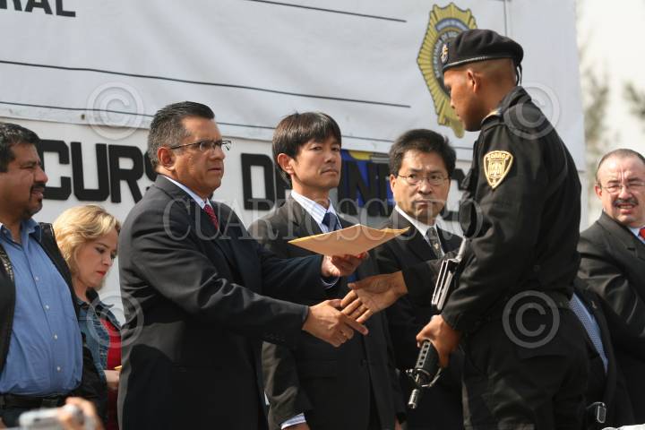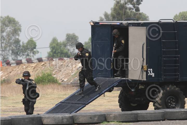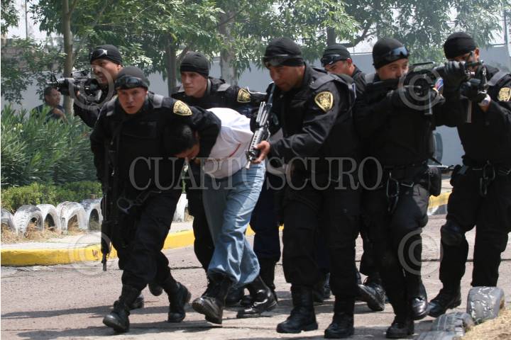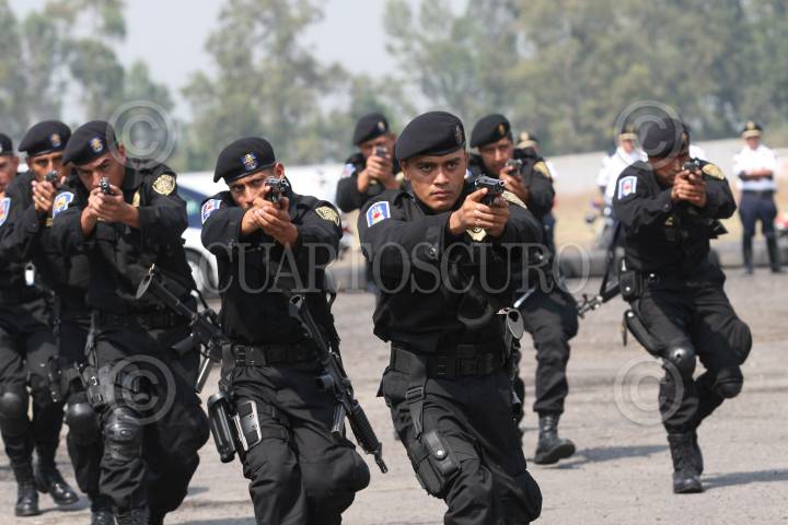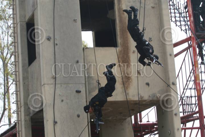 MÉXICO, D.F., 09MAYO2008.-Joel Ortega titular de la Secretaría de Seguridad Pública del Distrito Federal, acudio a las instalaciones en Tlahuac, donde se realizó la clausura del 5o. Escalón del Curso de Inducción del Agrupamiento Fuerza de Tarea, los cuales al termino de la ceremonia realizarón una exibición de las maniobras de aprendidas en el curso. FOTO: GUILLERMO PEREA/CUARTOSCURO.COM