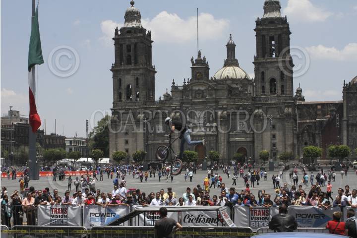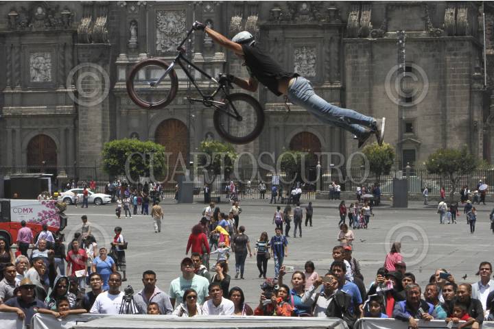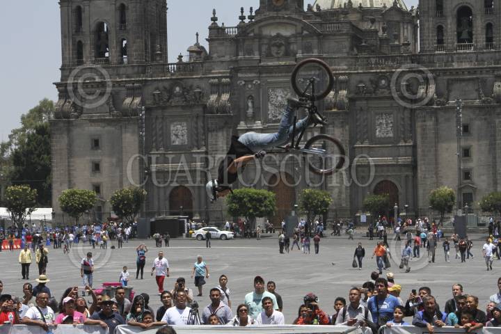 CIUDAD DE MÉXICO, 21ABRIL2017.- Como parte de la celebración de los 200 años de la bicicleta, un grupo de “Bikers Bmx”, hicieron una exhibición en la plancha del Zócalo Capitalino FOTO: ANTONIO CRUZ /CUARTOSCURO.COM