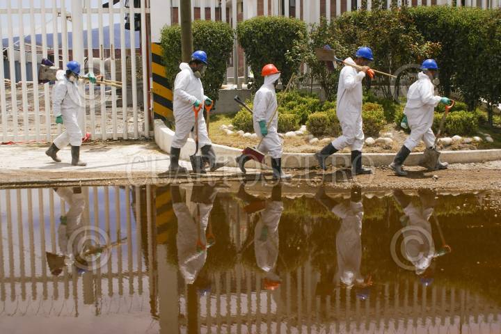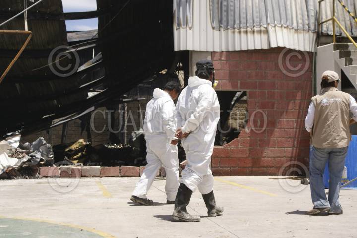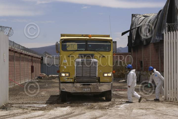 ATITALAQUIA, HIDALGO. 14ABRIL13.- La Secretaría de Salud de Hidalgo (SSH), a través de su titular, Pedro Luis Noble Monterrubio, pidió a las autoridades federales retirarle la licencia sanitaria federal a la empresa Agroquímicos ATC, siniestrada el pasado domingo en el Parque Industrial Atitalaquia. Además el funcionario exigió el confinamiento de los residuos tóxicos y la demolición de la planta siniestrada. Por su parte, peritos federales acudieron para realizar las pesquisas por la averiguación que la PGR tiene abierta, en tanto que personal especializado hace limpieza de la zona. FOTO: FRANCISCO VILLEDA /CUARTOSCURO.COM