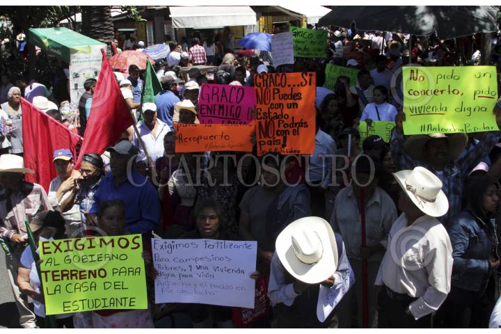 CUERNAVACA, MREOLOS, 27JUNIO2016.- Militantes de la organización Antorcha Campesina marcharon en Cuernavaca para exigir recursos para sus comunidades. También organizaciones campesinas se manifestaron, incluso quemaron papelería en una de las puertas de palacio de gobierno. FOTO: MARGARITO PÉREZ RETANA /CUARTOSCURO.COM