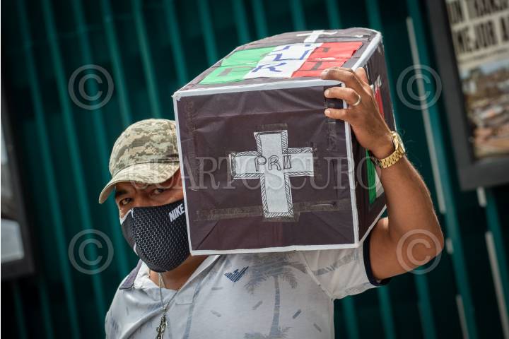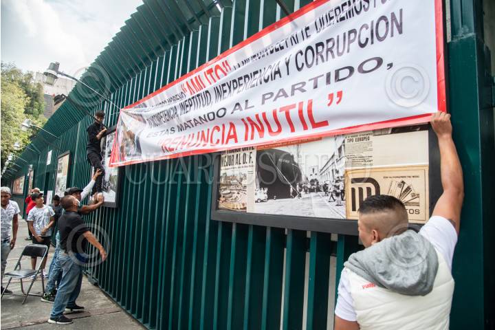 Militantes del PRI, se manifestaron al exterior del CEN priísta para exigir la renuncia de Alejandro Moreno Cárdenas, actual dirigente nacional, luego de los malos resultados obtenidos durante la jornada electoral del pasado 6 de junio.