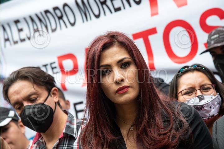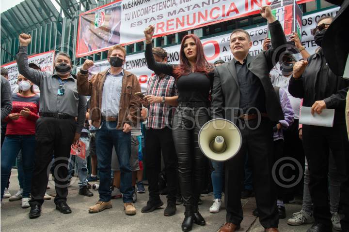 Nallely Gutiérrez Gijón, presidenta del Colegio Profesional de Derecho, organización nacional adherente al PRI, y militantes del partido tricolor, se manifestaron al exterior del CEN priísta para exigir la renuncia de Alejandro Moreno Cárdenas, actual dirigente nacional, luego de los malos resultados obtenidos durante la jornada electoral del pasado 6 de junio.