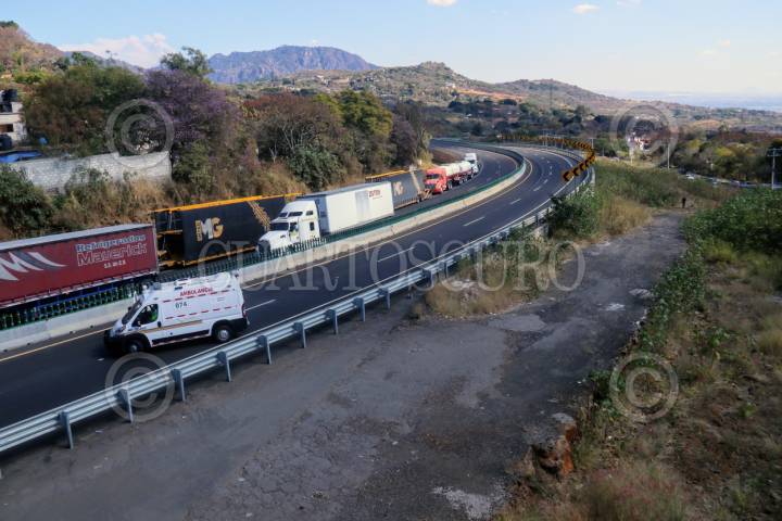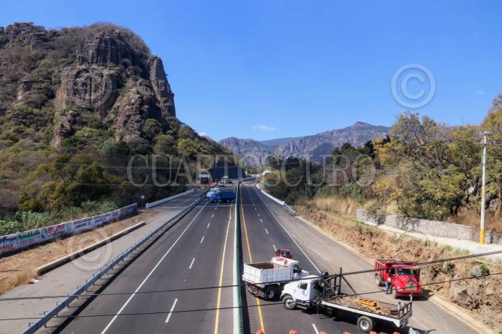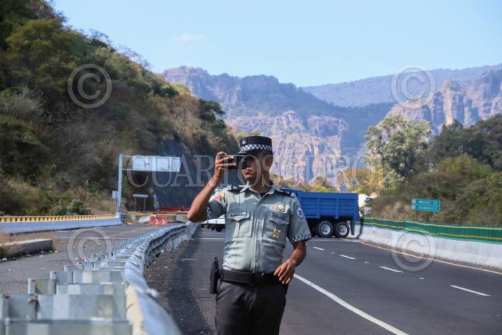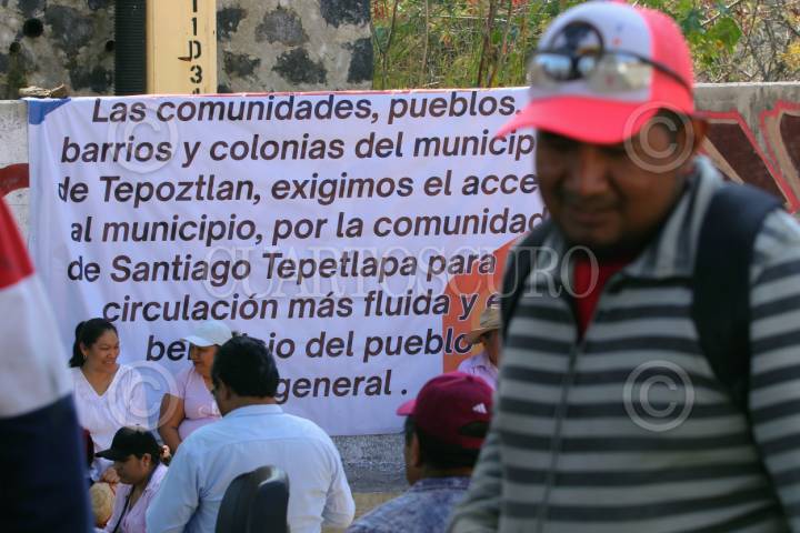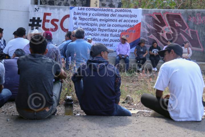 TEPOZTLÁN, MORELOS, 24ENERO2024.- Vecinos de colonias y barrios de este municipio exigen que se les de acceso a la autopista La Pera-Cuautla por la comunidad de Santiago Tepetlapa. Por lo anterior mantienen bloqueada la vía en ambos carriles y se encuentra dialogando con las autoridades municipales y de la Secretaria de Comunicaciones Transportes. FOTO: MARGARITO PEREZ RETANA/CUARTOSCURO.COM
