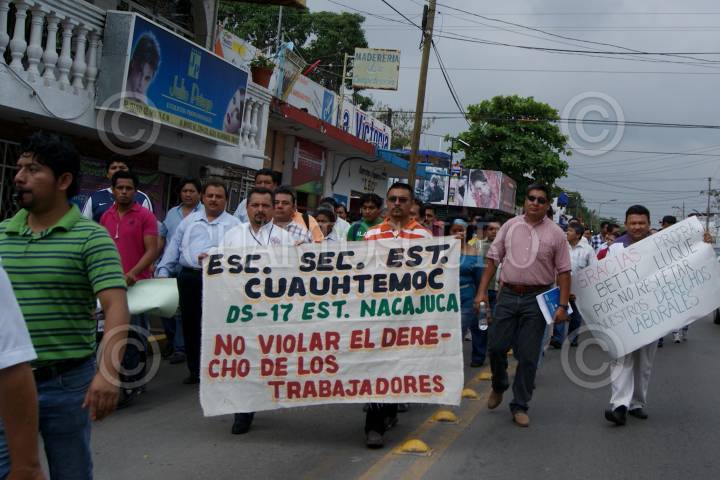 VILLAHERMOSA, TABASCO, 01MARZO2011.- Varios centenares de educadores de los 17 municipios del estado realizaron una marcha y manifestación en las instalaciones de la SEP local en donde exigen que no violenten sus derechos como trabajadores, los cuales no han sido respetados por Beatriz Luque; secretaria de educación en el estado. FOTO: MARCO POLO GUZMAN HERNANDEZ/CUARTOSCURO.COM