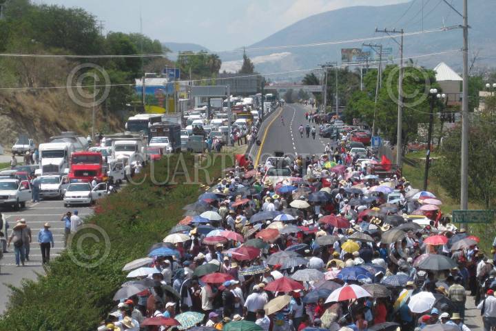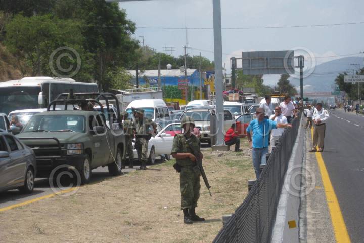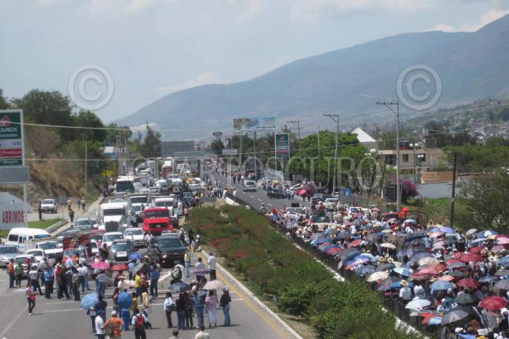 CHILPANCINGO, GUERRERO, 06JUNIO2011.- Maestros pertenecientes a la Coordinadora Estatal de los Trabajadores de la Educacion en Guerrero (CETEG) llevaron a cabo una marcha por los carrilles centrales de la Autopista del Sol para después realizar un bloqueo a la altura del crucero de la colonia Tatagildo al norte de la capital del estado el cual duro alrededor de 3 horas, para exigir al gobierno estatal que encabeza Angel Aguirre Rivero, aumento salarial, pago de 90 dias de aguinaldo, recategorizaciones, entre otras demandas que se encuentran dentro de su pliego petitorio. Cabe mencionar que durante la protesta cientos de automovilistas que se dirigían hacia la ciudad de Mexico y el puerto de Acapulco resultaron afectados. FOTO: OSCAR ALVARADO/CUARTOSCURO.COM
