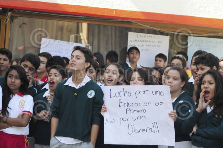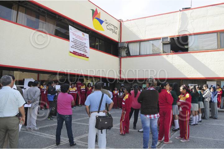CHILPANCINGO, GUERRERO, 22ENERO2014.- Alumnos, profesores y padres de familia de la secundaria Galo Soberón y Parra marcharon del plantel hacia las oficinas del ex Ineban. Exigieron la asignación del director y maestros; también señalaron que el gobernador del estado, Ángel Aguirre Rivero y Silvia Romero Suárez prometieron la entrega de computadoras desde el pasado diciembre y hasta la fecha “no han cumplido”. FOTO: JOSÉ I. HERNÁNDEZ /CUARTOSCURO.COM