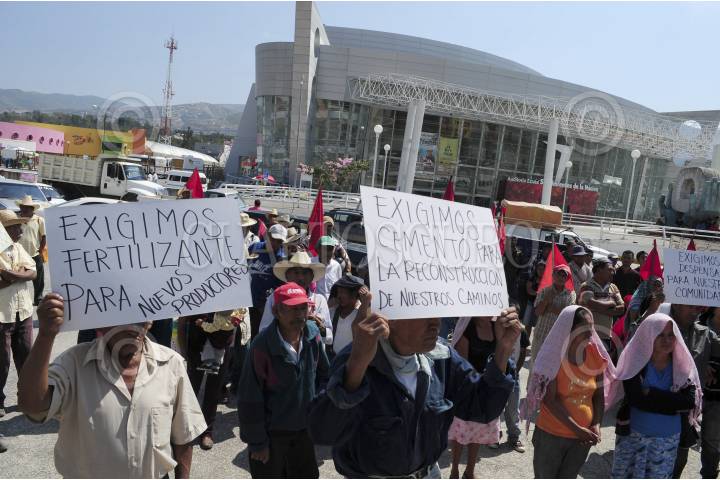 CHILPANCINGO, GUERRERO, 23ABRIL2014.- Campesinos de la región Centro, Montaña y Costa chica que integran el Movimiento Antorchista Nacional (Antorcha Campesina) con pancartas en mano se manifestaron en el palacio de gobierno para exigir fertilizantes, despensas y rehabilitación de caminos, así como una audiencia y sentenciaron en caso de no concederles el gobierno estatal la audiencia bloquearan avenidas. FOTO: JOSÉ I. HERNÁNDEZ /CUARTOSCURO.COM