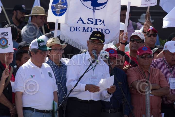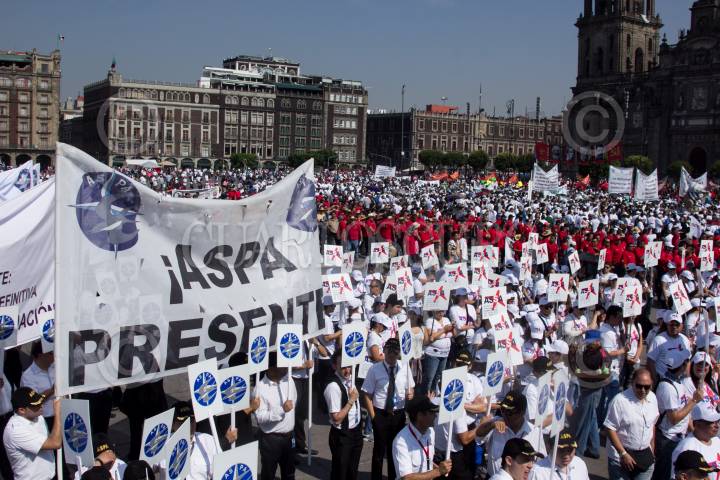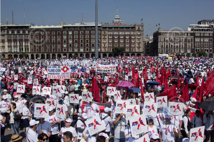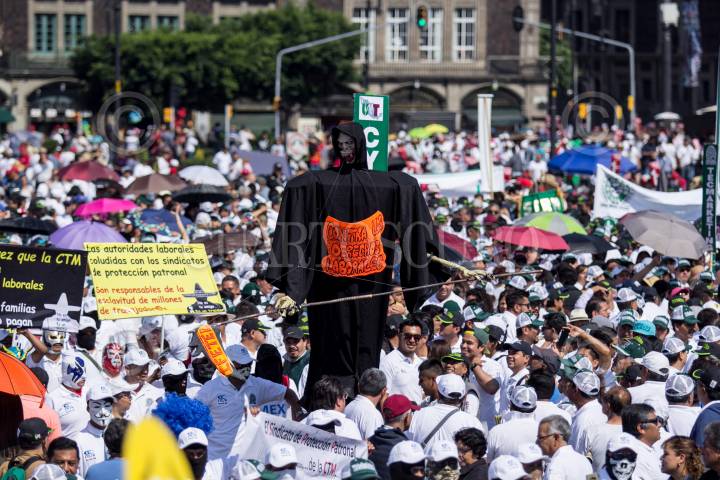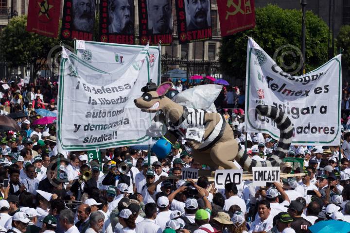 CIUDAD DE MÉXICO, 01MAYO2018.- Sindicalistas ferrocarrileros, pilotos, maestros, entre otros marcharon de Eje Central al Zócalo capitalino para exigir las respectivas mejoras en sus áreas de trabajo, esto con motivo de una conmemoración más del Día del Trabajo. FOTO: GALO CAÑAS /CUARTOSCURO.COM
