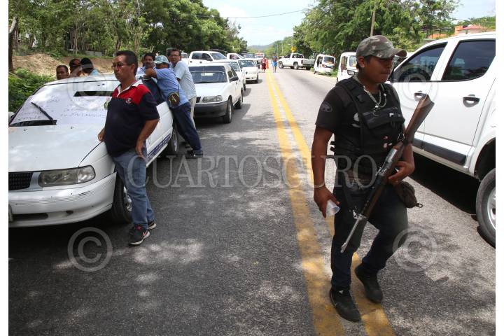 XALTIANGUIS, GUERRERO, 25JUNIO2019.- Habitantes de Xaltianguis apoyados por el grupo de autodefensa denominado “Los Dumbos” bloquean la carretera federal México – Acapulco desde las 9:30 de la mañana, para exigir doctores y medicinas para el hospital de esa comunidad. Hasta las 3 de la tarde ninguna autoridad acudió para atender a los manifestantes, quienes aseguraron que el bloqueo se retiraría cuando se atiendan sus demandas. FOTO: CARLOS ALBERTO CARBAJAL /CUARTOSCURO.COM