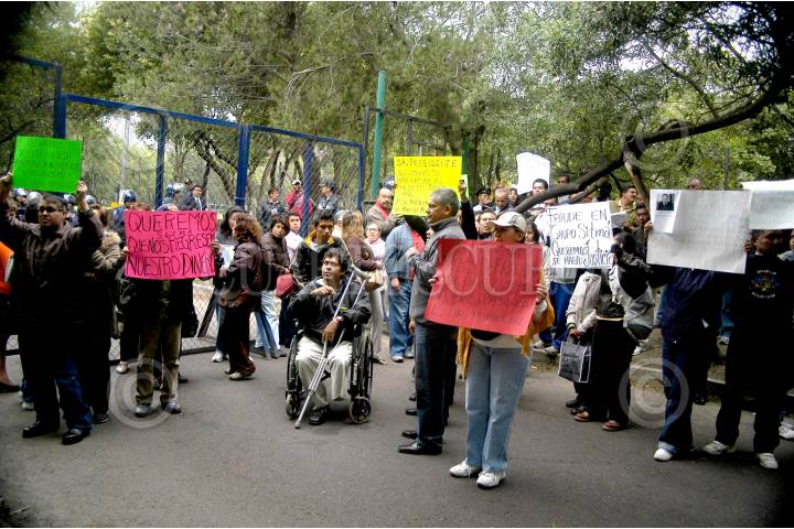 MÉXICO, D.F., 04NOVIEMBRE2009.- Personas de distintos estados de la República. Se manifestaron a las afueras de la Residencia oficial de Los Pinos exigiendo se les apoye en la detención de Leonardo Tiro Moranchel quien ha defraudado a cientos de personas a través de cajas de ahorro popular del Grupo SITMA. FOTO: LUIS CARBAYO/CUARTOSCURO.COM