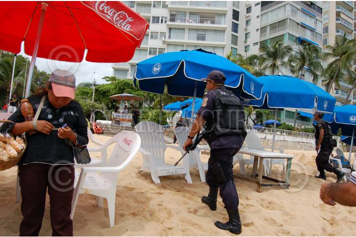 ACAPULCO, GUERRERO 13 JULIO2009.- Turistas nacionales y extranjeros se divierten en playas de Acapulco, donde existe vigilancia policiaca FOTO: MARINO D. VALDEZ/CUARTOSCURO.COM