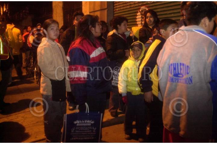 México, D.F. 04ENE2004.- La entrega de regalos a los socios de la Unión de voceadores este año comenzó a las 4:00 horas ya que muchos de los compañeros hicieron fila aproximadamente desde las 20:00 de la noche anterior para escoger sus obsequios. FOTO: Sandra Perdomo/CUARTOSCURO.COM