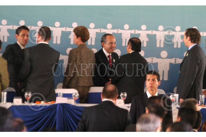 MÉXICO, D.F. 23ABRIL2007.-Felipe Calderón presidente de la republica, acompañado de parte de su gabinete y miembros de la unión de voceadores clelebró 84 Aniversario de la Unión Nacional de Expendedores y Voceadores de la Ciudad de México, donde mencionó el respeto a la libertad de prensa. FOTO: SAUL LÓPEZ/CUARTOSCURO.COM