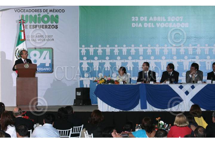 MÉXICO, D.F. 23ABRIL2007.- El presidente Felipe Calderón clelebró el 84 Aniversario de la Unión Nacional de Expendedores y Voceadores de la Ciudad de México, donde mencionó ser respetuoso de la libertad de expresión y rechazó cualquier tipo de sensura. FOTO: SAUL LÓPEZ/CUARTOSCURO.COM