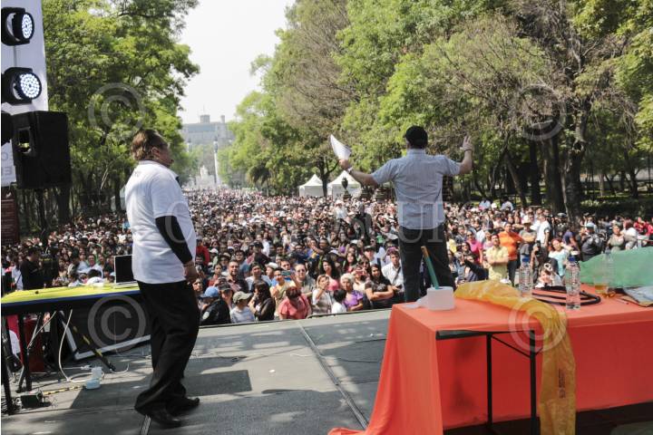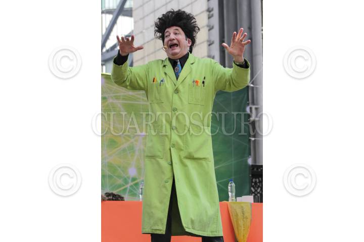 MEXICO, D.F., 23FEBRERO2014.-Beakman, el excéntrico científico protagonista de un programa de televisión de los noventas, se presentó esta mañana en el bosque de Chapultepec ante aproximadamente seis mil espectadores de todas la edades, en una divertida clase de ciencias, en la que explicó diversos fenómenos cientificos de una manera sencilla y amena. Esta fue la tercera de sus presentaciones en la Ciudad de México, luego de haberse presentado en días pasados en el Museo de Ciencias Universum, de la UNAM, en el marco de los festejos por el 75 aniversario del Instituto de Física de dicha institución. Entre los asistentes a la presentación se encontraban jóvenes estudiantes de ciencias que fueron inspirados por este personaje para decidirse a estudiar algunas áreas de las ciencias. FOTO: DAVID POLO /CUARTOSCURO.COM