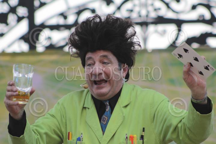 MEXICO, D.F., 23FEBRERO2014.- Beakman, el excéntrico científico protagonista de un programa de televisión de los noventas, se presentó esta mañana en el bosque de Chapultepec ante aproximadamente seis mil espectadores de todas la edades, en una divertida clase de ciencias, en la que explicó diversos fenómenos cientificos de una manera sencilla y amena. Esta fue la tercera de sus presentaciones en la Ciudad de México, luego de haberse presentado en días pasados en el Museo de Ciencias Universum, de la UNAM, en el marco de los festejos por el 75 aniversario del Instituto de Física de dicha institución. Entre los asistentes a la presentación se encontraban jóvenes estudiantes de ciencias que fueron inspirados por este personaje para decidirse a estudiar algunas áreas de las ciencias. FOTO: DAVID POLO /CUARTOSCURO.COM