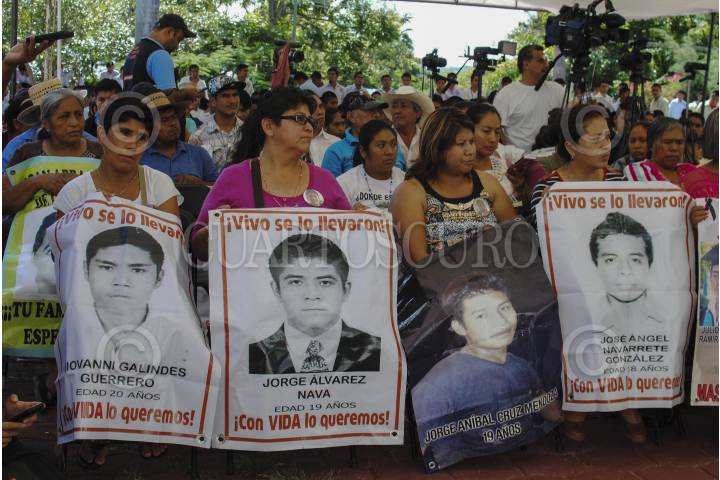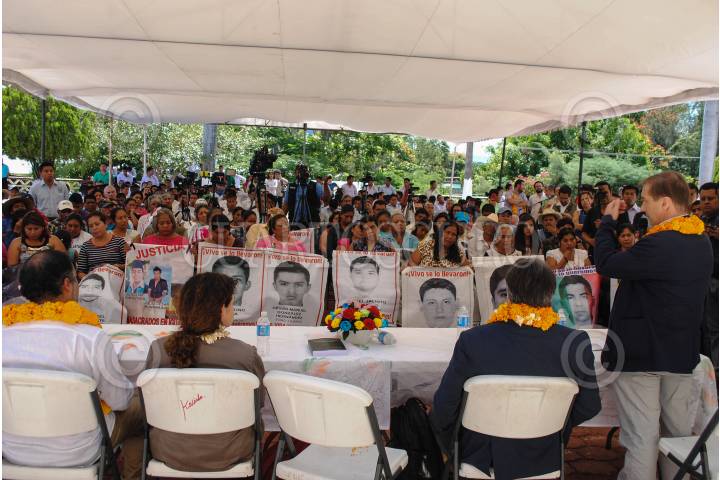 TIXTLA, GUERRERO 08 SEPTIEMBRE 2015.- Integrantes del Grupo Interdisciplinario de Expertos Independientes (GIEI) de la Comisión Interamericana de Derechos Humanos (CIDH) rindieron el informe de la investigación y las primeras conclusiones de la desaparición y homicidio de estudiantes de Ayotzinapa en el 2014 en Iguala. Los expertos de izquierda a derecha Claudia Paz, Francisco Cox, Carlos Beristaín y Omar Gómez, secretario ejecutivo del grupo de expertos. FOTO: JOSÉ I. HERNÁNDEZ / CUARTOSCURO.COM